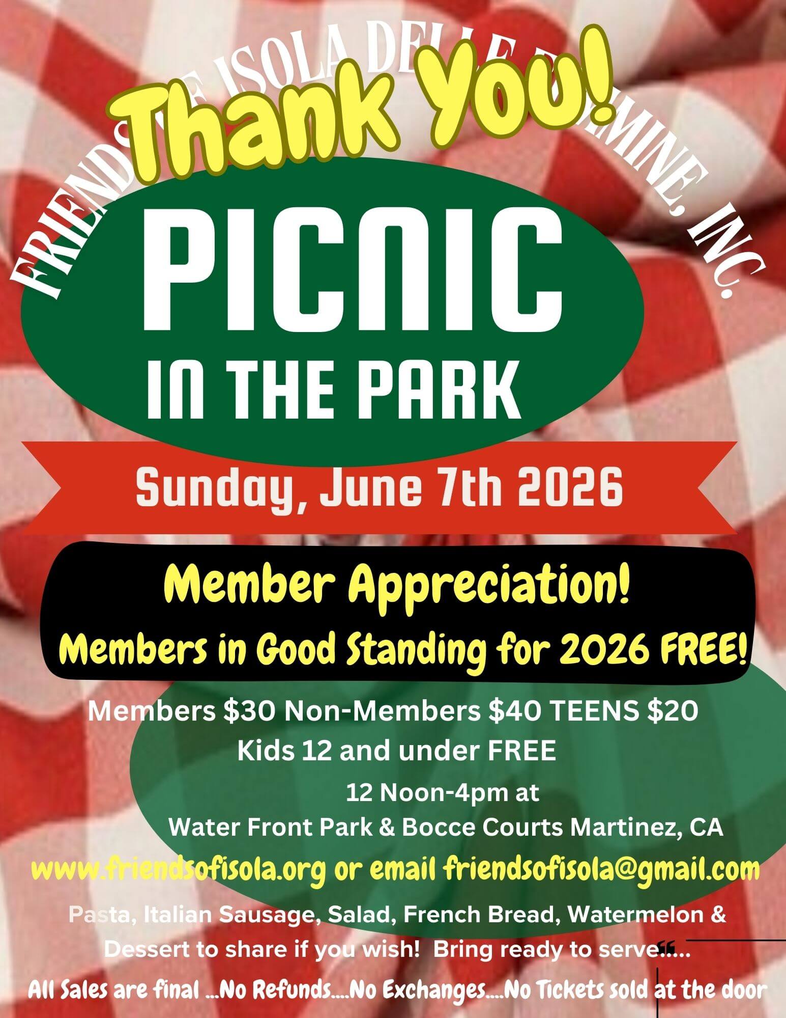At our June 2025 scholarship picnic in Martinez, we awarded $11,000 in scholarships to 11 outstanding college-bound students. This year, we will again have our Annual FOI Scholarship Picnic. Entrance fee to be determined, but to honor our members, we will offer a zero-cost fee for members in good standing—more details to follow.